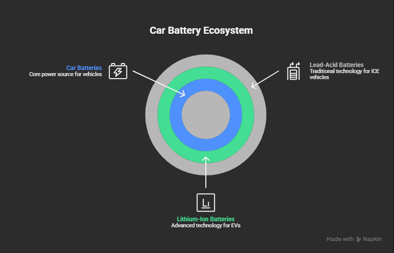 Car battery companies serve a broader market that includes petrol cars, diesel cars, hybrids, commercial vehicles, and aftermarket replacement batteries. Many of these firms are established auto battery manufacturers with a strong history in lead-acid technology, though more are now adding lithium-ion and start-stop solutions. Well-known global players include Clarios and Exide Technologies, while India has strong brands such as Exide, Amara Raja, and Eastman.